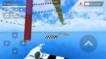 2、进入地图后左边控制前后左右,右边控制跳跃,操控角色前往终点就可以通关。
