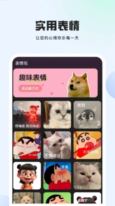 2、实用表情板块有多样趣味表情,涵盖不同风格、热门IP,满足社交互动中多样情绪表达需求。