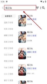 2、点击首页顶部搜索栏,输入影片名称或演员名字,点击搜索结果进入播放页面。