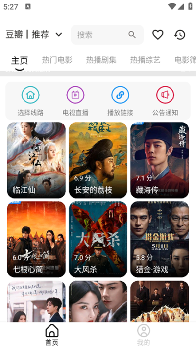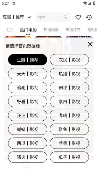 首页设有多个精选分类:如“热门电影”、“热播剧集”、“热播综艺”等。