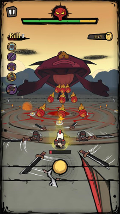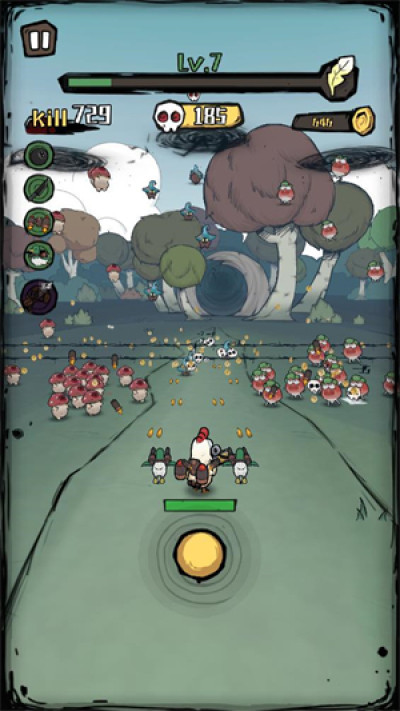 2、进入关卡后小鸡会自动攻击出现的怪物。