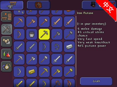 泰拉瑞亚terraria手机版是一款拥有高自由度的游戏,玩家可以在游戏中做很多事情:制造武器战胜各种各样的敌人及群落;挖掘地下寻找器材配件、金钱和其他有用的东西,收集木材,石料,矿石等资源,用你的世界创造你需要的一切并守护它。建造一所房子,一所堡垒,甚至一座城堡,人们将会搬进来住在那里,卖给你各种各样的商品来协助你的旅程。