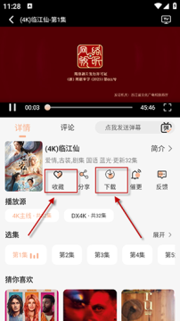 4、在播放页面可以下载收藏影片,点击右上角的TV图标可以投屏。