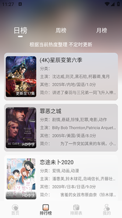榜单推荐机制 提供热门排行榜、人气榜、热搜榜等功能,轻松发现当下最火影视作品。