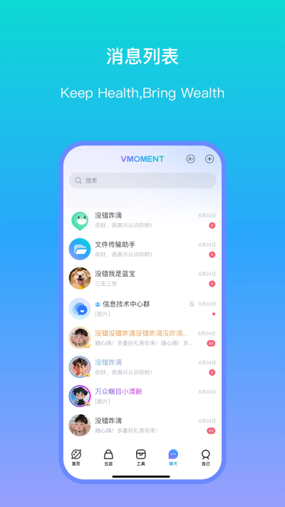 1、一键下载VMoment软件到手机,就能随时在线聊天互动