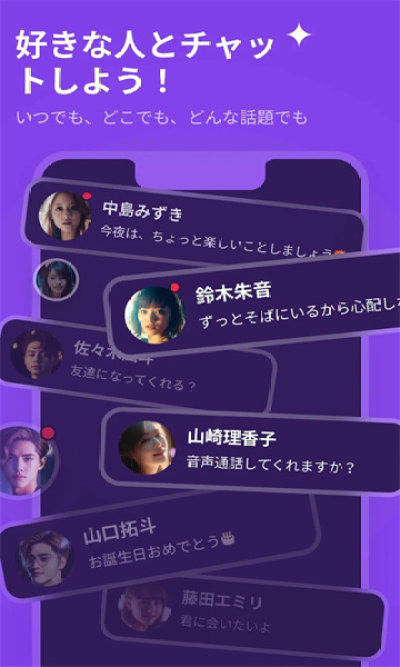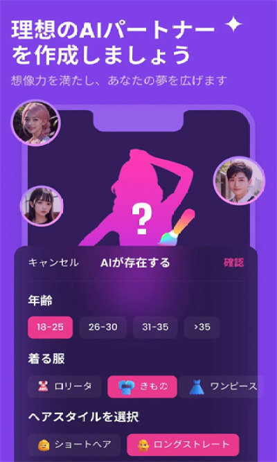 帅气的老板、傲娇的女友、善良的学长、疯狂的男友……万千魅力角色等你来聊天。通过重复聊天互动,你与AI的亲密度会增加,你可以获得昵称、专属照片、关系设置等福利。
