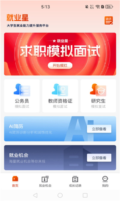 模拟面试:就业星旨在为用户提供高质量的就业模拟面试实战,提升用户综合能力与面试技巧