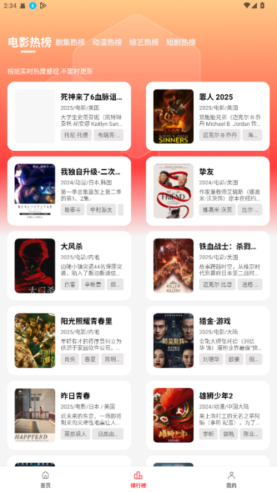电影天堂app最新版2025是一款提供高清免费影视资源的软件,软件汇聚了全球热门的电影、电视剧和综艺等资源,第一时间更新资源能够紧跟影视热点,还有智能化的搜索功能可以通过关键词快速找到目标影片,享受超高清画质观看视频过程中无广告,为用户营造纯净的观影环境!