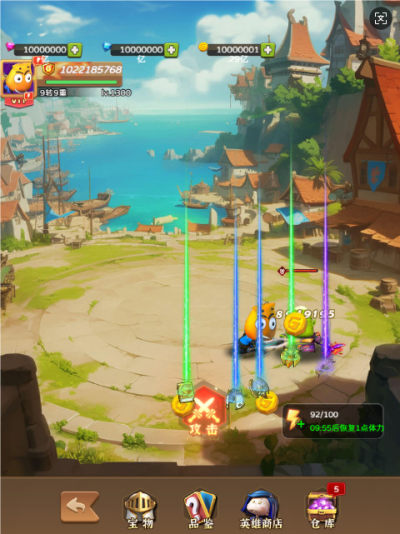 同样在主界面顶部,“召唤”和“抽奖”每天提供一次免费游玩机会,或许能抽到珍贵的金色或粉色道具或英雄?