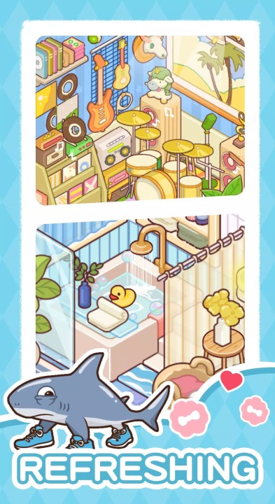 放松又有成就感:享受舒缓的音乐、可爱的画面,以及将一切整理得井井有条时的平和心情。