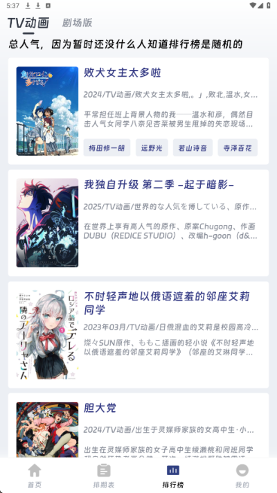 4、交互界面设计简洁明快,布局有序,营造清新舒适的使用环境,让用户更加舒适的欣赏动漫。