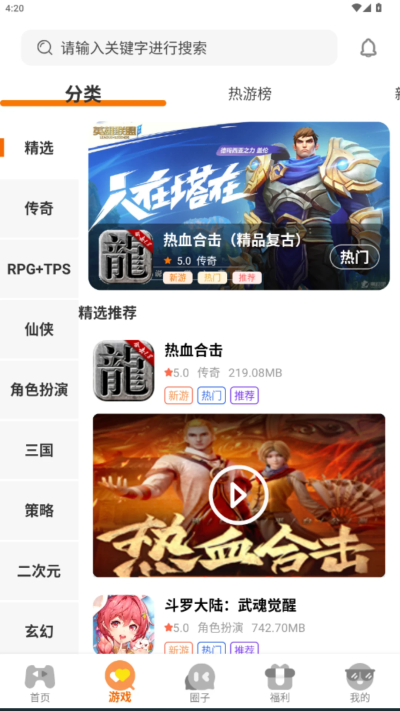3、通过分类筛选游戏,如果您有特定类型的游戏偏好,可以通过顶部菜单或侧边栏找到“分类”选项。在这里,您可以根据游戏类型进行筛选,如传奇、仙侠、角色扮演等,快速定位到自己喜欢的游戏种类。