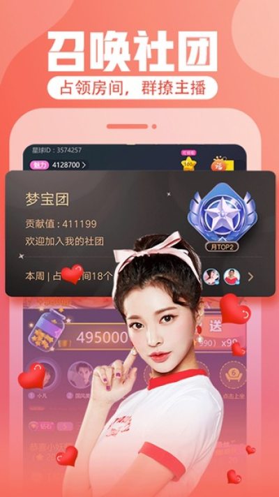 社团占领主播房间、主播PK对决,玩法多样,互动更刺激。