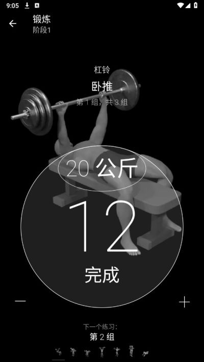 支持音频提示,帮助用户高效安排组间休息与训练节奏。