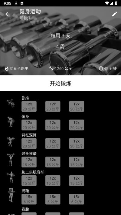 可记录每次锻炼的负重重量和重复次数,方便跟踪训练强度与进步情况。