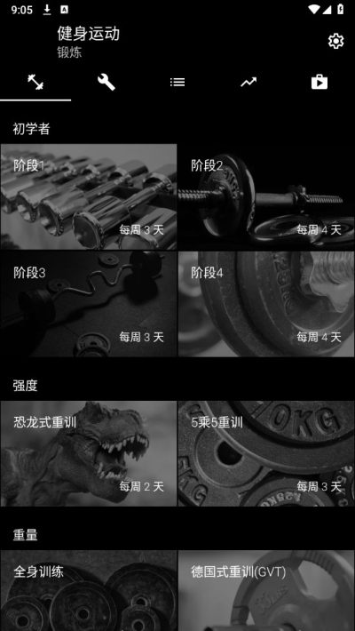 提供多个专业制定的训练模板,包括减脂、增肌、塑形、核心训练等主题。
