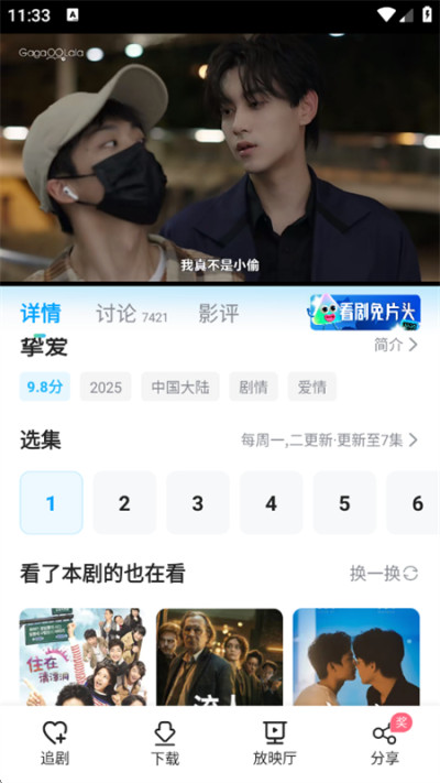 支持剧集离线下载,让用户在没有网络的情况下也能随时随地观看喜爱的剧集,出行无忧。
