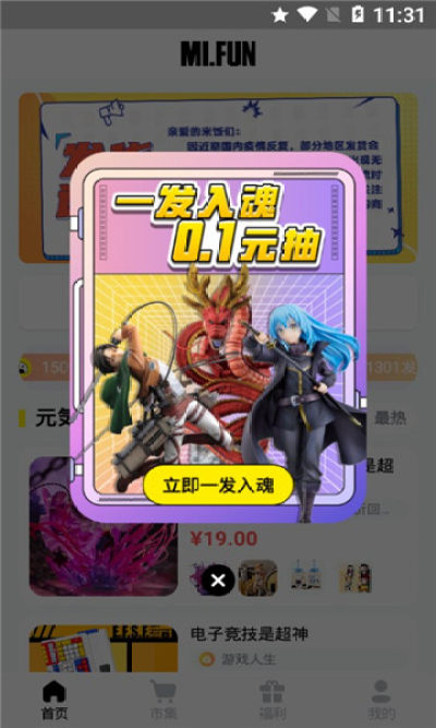 4.【新人专享福利,0.1元一发入魂】 新人注册即享官方补贴价0.1元抽手办,最高拿4999元正版手办!