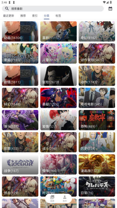 索引搜索功能:支持按类型、年份、评分等多种方式查找动漫资源,快速找到想看的番剧。