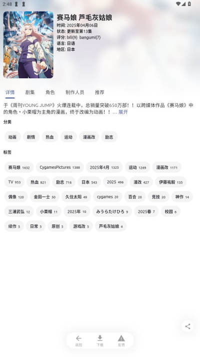 3.在详情页面会显示动漫的相关信息