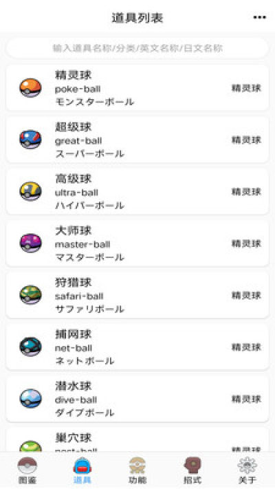 1、强大的搜索引擎,你可以直接根据关键字搜索出你想要查询的宝可梦信息!