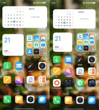HyperOS系统桌面最明显的变化,就是默认布局从祖传的 6x4,变成了 7x4。更新完成后,会直接多出来一排空余的地方。