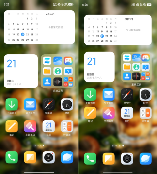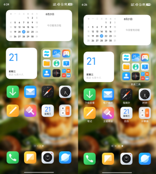 此外包括图标、小组件、文件夹在内的所有元素,都变小了一丢丢。