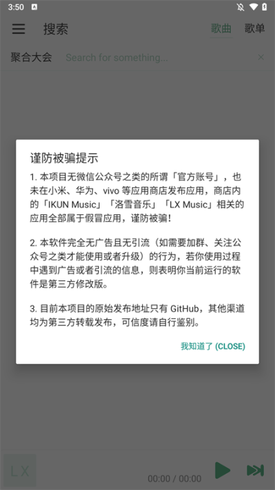 ikun音乐 是一款基于 洛雪音乐 开源项目进行二次开发的本地音乐播放器。它不仅继承了洛雪音乐稳定、纯净的优点,还在此基础上进行了优化和扩展,支持多平台歌曲搜索、在线播放、歌词显示等功能,是一款专为音乐爱好者打造的多功能、无广告、全免费的音乐播放软件。