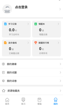 5、点开我的,可以查看自己的学习记录、错题本、刷题排行榜、进步曲线等。