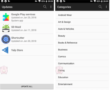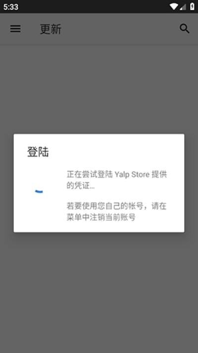 当你第一次打开 Yalp Store 时,默认会显示“Your Apps”页面。点击右上角的三点菜单并选择“Updates”,这将自动登录到一个内置的 Google 账号。