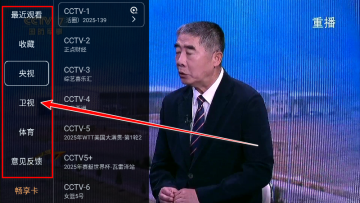 2.可以看到左侧会显示央视、卫视、最近观看、收藏等板块内容,在这里小编以点击卫视为例