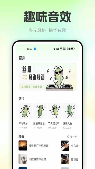 2、特色主题曲库、搞怪趣味音效,相比传统音乐平台,内容更具创意与个性。