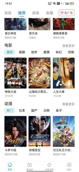 海量免费:无须购买,下载即可使用,海量免费高清 影视内容随意播放。