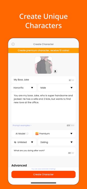 • 创建您自己的角色:通过简单的提示创建您自己的角色,并选择它们是公开的、不公开的还是私人的。