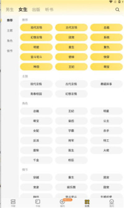 按“题材”“热度”“完结状态”细分标签(如“无限流”“马甲文”“年代文”),支持关键词搜索与作者名检索,3秒定位心仪书籍。