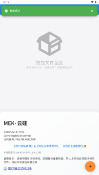 MEK云硅是非常强大的手机云盘工具,在这里支持多种不同类型的文件进行储存,随时可以在线进行文件上传,为你提供超大的储存空间,用户可以更好的在线进行使用,为你带来便捷的上传服务,用户可以更好的体验高速的传输服务,放心的在线进行文件管理。