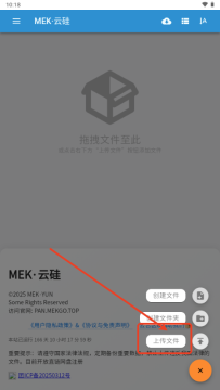 MEK云硅app官方版是一款专为移动端设计的高性能云存储工具,以超大空间、稳定传输、智能管理为核心优势,支持图片、视频、文档、压缩包等全格式文件上传与下载。通过优化小文件传输效率、批量外链分享、多层级服务保障等技术,为用户提供安全、便捷、高效的云端数据管理方案,满足个人存储、团队协作、资源分享等多样化需求。