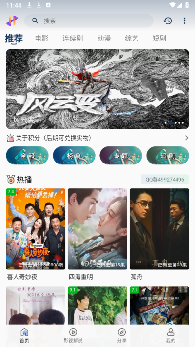 2、进入首页,可以看到有很多的影视剧集,电视剧、电影以及综艺都有。