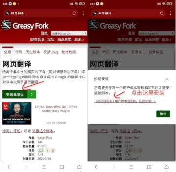Greasy Fork是一个非常受欢迎的脚本分享站,有大量的开发者在这里分享脚本。从这个网站安装脚本也很简单,直接找到你想要的脚本安装页面,点击“安装此脚本”(第一次在这个网站安装的话,会弹出让用户安装用户脚本管理器的提示,网梭浏览器内置脚本管理器,直接安装即可)。