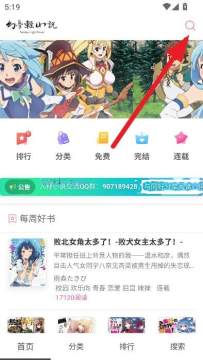1、打开应用进入主页后,在界面右上角点击 放大镜图标,即可进入搜索页面。输入你想阅读的小说名称或关键词,系统将智能匹配相关作品,帮助你快速定位目标内容