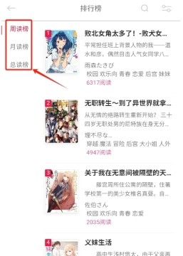 2、点击进去可以点击查看不同时期的轻小说的热度榜单,为你的阅读选项提供参考