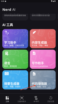 拍照搜题:用户可通过拍照上传问题,Nerd AI 会立即提供分步解析和答案,覆盖数学、科学、历史等学科。