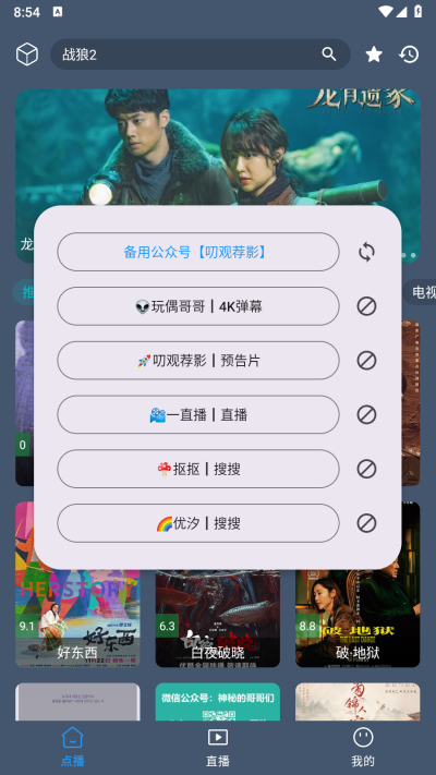 3、点击搜索后,会加载显示所有影视源的相关结果。