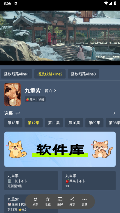 2、从众多影视资源中挑选一部心仪的影片进行播放,这里以“九重紫”为例。