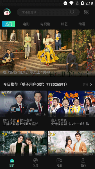 1.在首页可以看到最新、最热的影视推荐,包括电影、电视剧、综艺、动漫等。