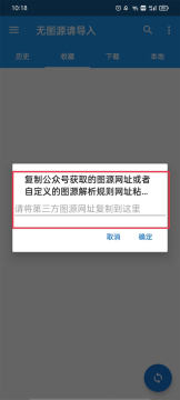 1、同样还是打开app,这时会弹出一个复制公众号……等等提示,将第三方图源网址复制到这里。