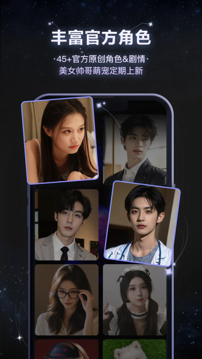 3、提供30+官方原创角色剧情,从中选择喜爱的真人角色进行互动,保证了内容品质。