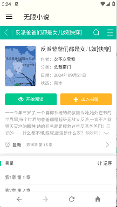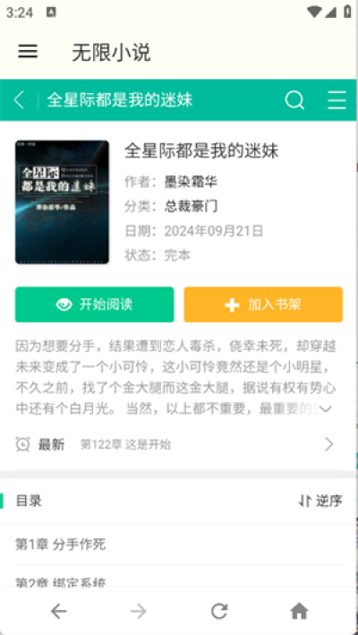 4、点开喜欢的小说进入详情页,点击开始阅读