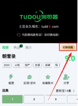 1、进入土豆浏览器app选择感兴趣的影视进入到播放页面