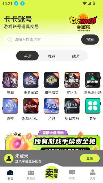1、在线下载卡卡账号APP到手机中,就能随时打开查看和购买账号;